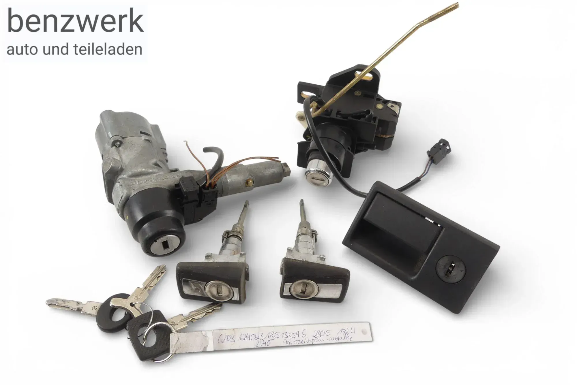 Kompletter Schloßsatz inkl 3x Schlüssel für W124 Limousine und C124 Coupe mit Schaltgetriebe bzw ohne Wählhebelsperre