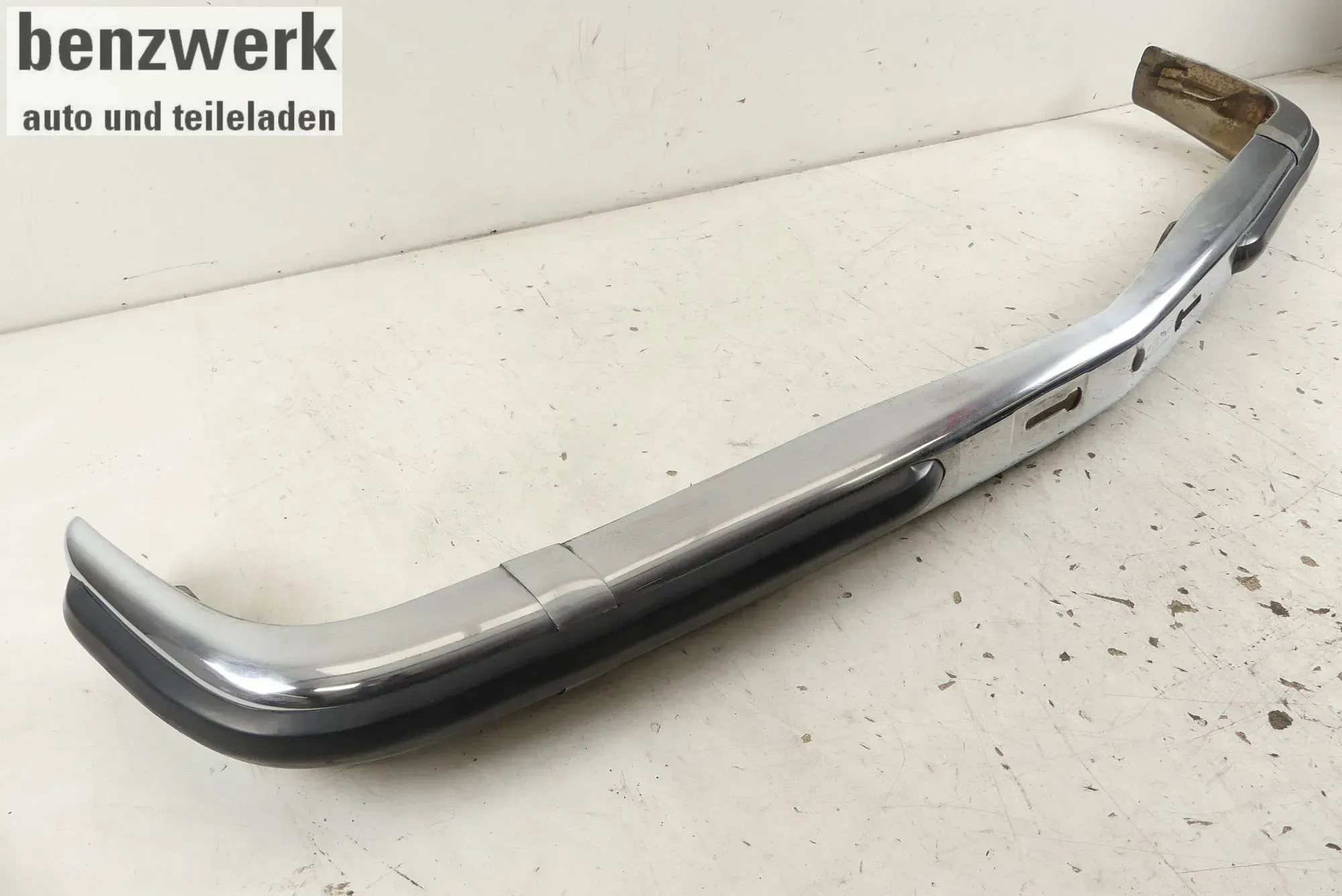 Stoßstange aus Lagerräumung, ordentlicher Zustand mit gebrauchsspuren und Patina, kein von aussen sichtbarer Rost. Benötigt eine finale Politur. Innenseite muss allerdings konserviert werden.Anmerkungen zum Zustand: