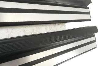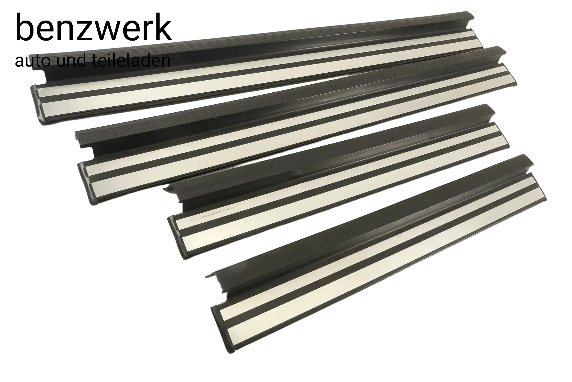 Mercedes W124 Mopf 4x Einstiegsleiste schwarz mit Chromeinlage