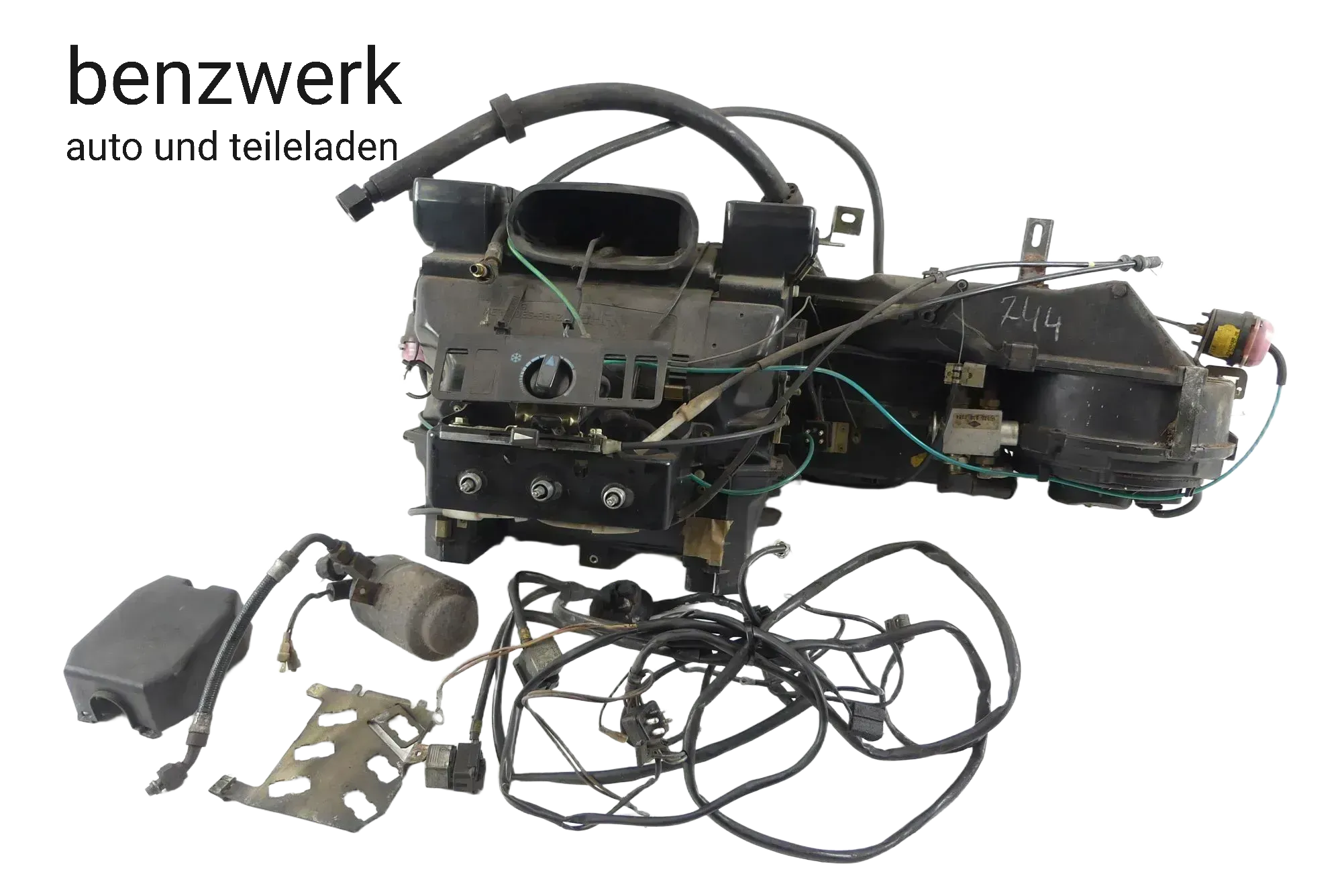 Lieferumfang wie abgebildet, aus einem 79er 300D. Kompletter Heizungskasten mit Klimaregelung und Gebläse, Kabelbaum mit Relais und Trockner. Es fehlt der Kondensator mit Gebläse und natürlich der Kompressor mit HalterungAnmerkungen zum Zustand: